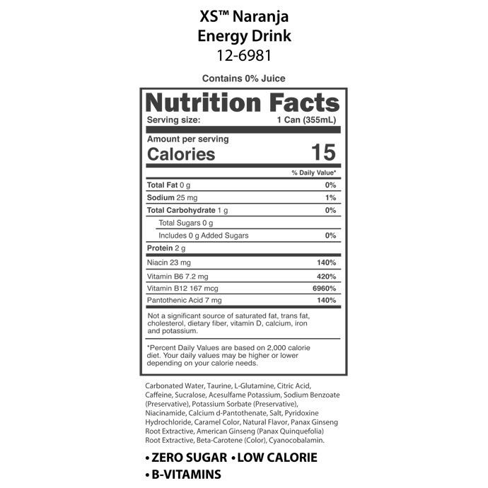 XS™ Energy Drink 12 oz - Naranja
